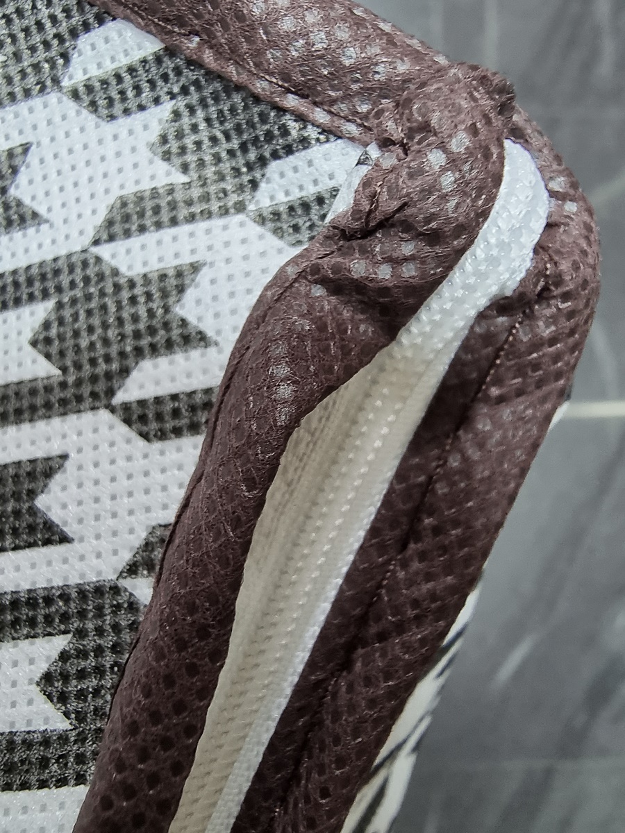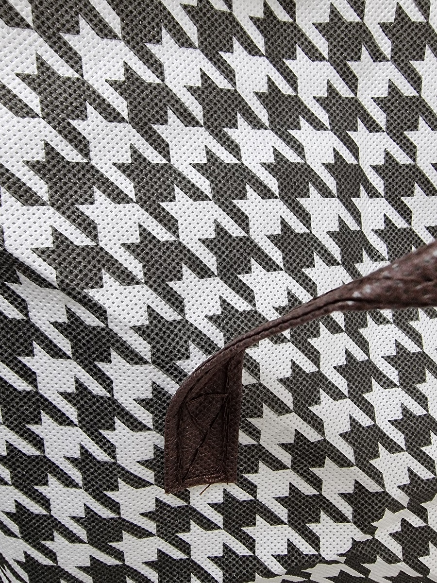- kolor biało czarna krata z brązową oblamówką