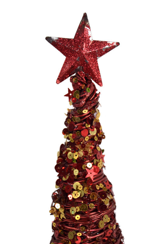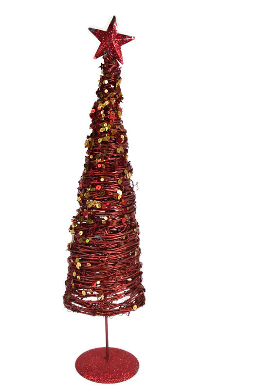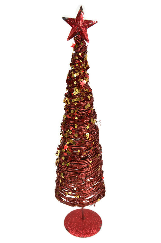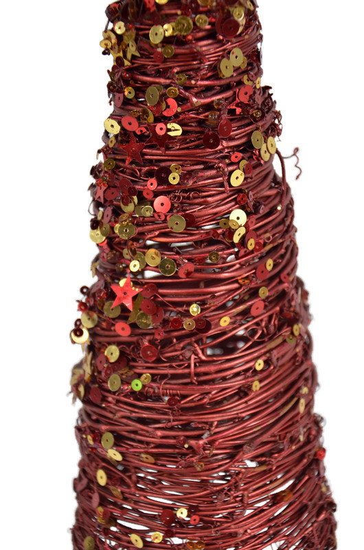 Choinka świąteczna wykonana jest z metalowego drutu w kolorze