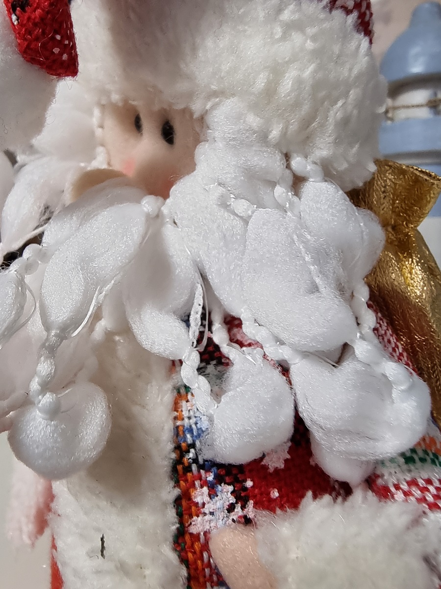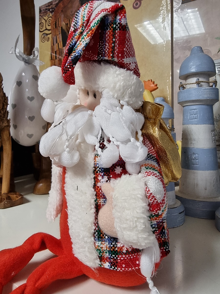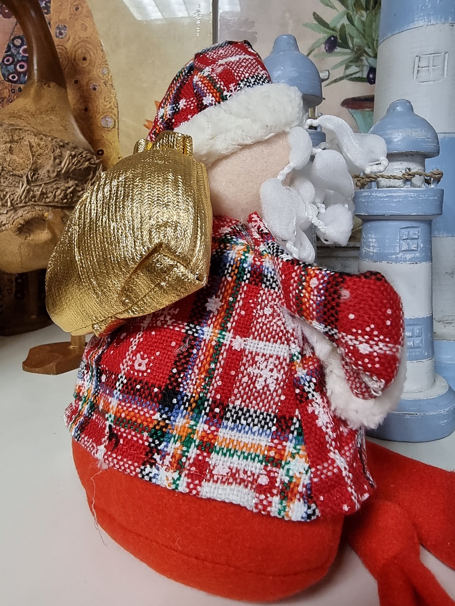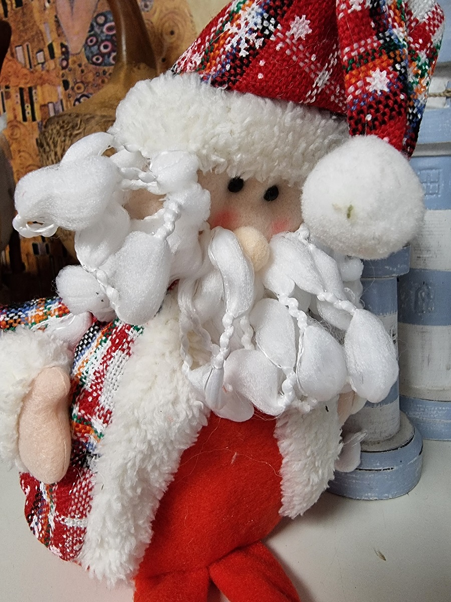 Pluszowy Mikołaj w czapce to doskonała świąteczna ozdoba, która ozdobi niejedną komodę lub kominek