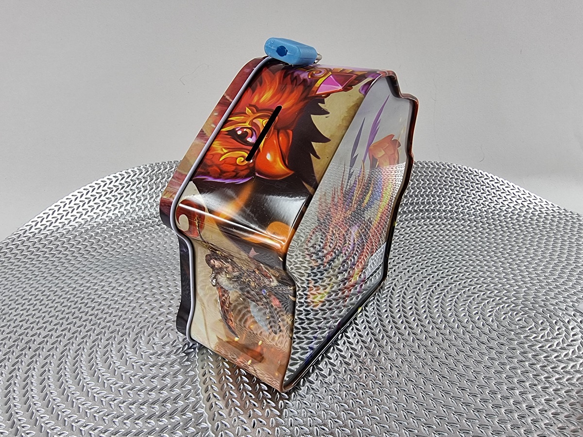 Skarbonka posiada otwór, przez który można wrzucać monety i banknoty.