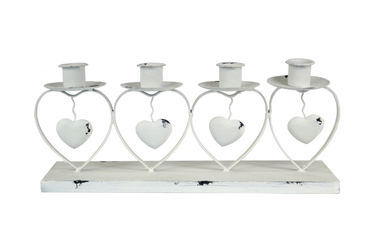 Świecznik wykonany jest z metalu, pomalowanego na biało
